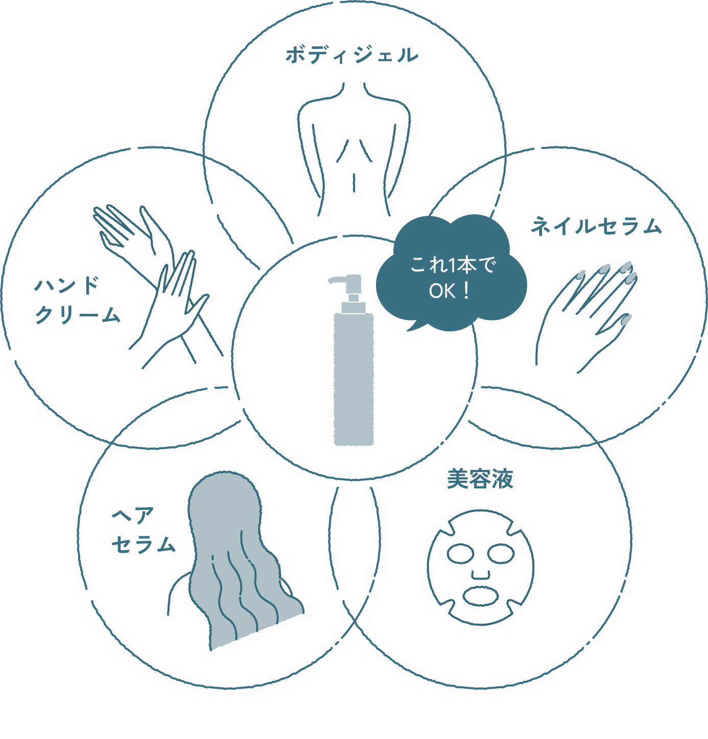 そして皮脂腺がない「ネイル」も、こまめなお手入れが理想ではあるもののケアが大変なパーツ。でも、手と一緒にケアできればぐっと取り入れやすくなります。だからsunalは、全身はもちろん、ネイル・お顔・さらに髪までこれ1本でOKな処方に仕上げました。